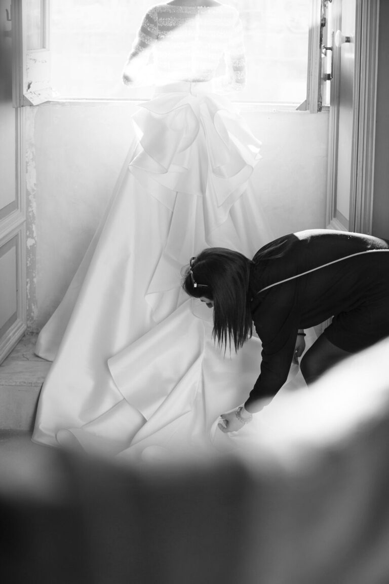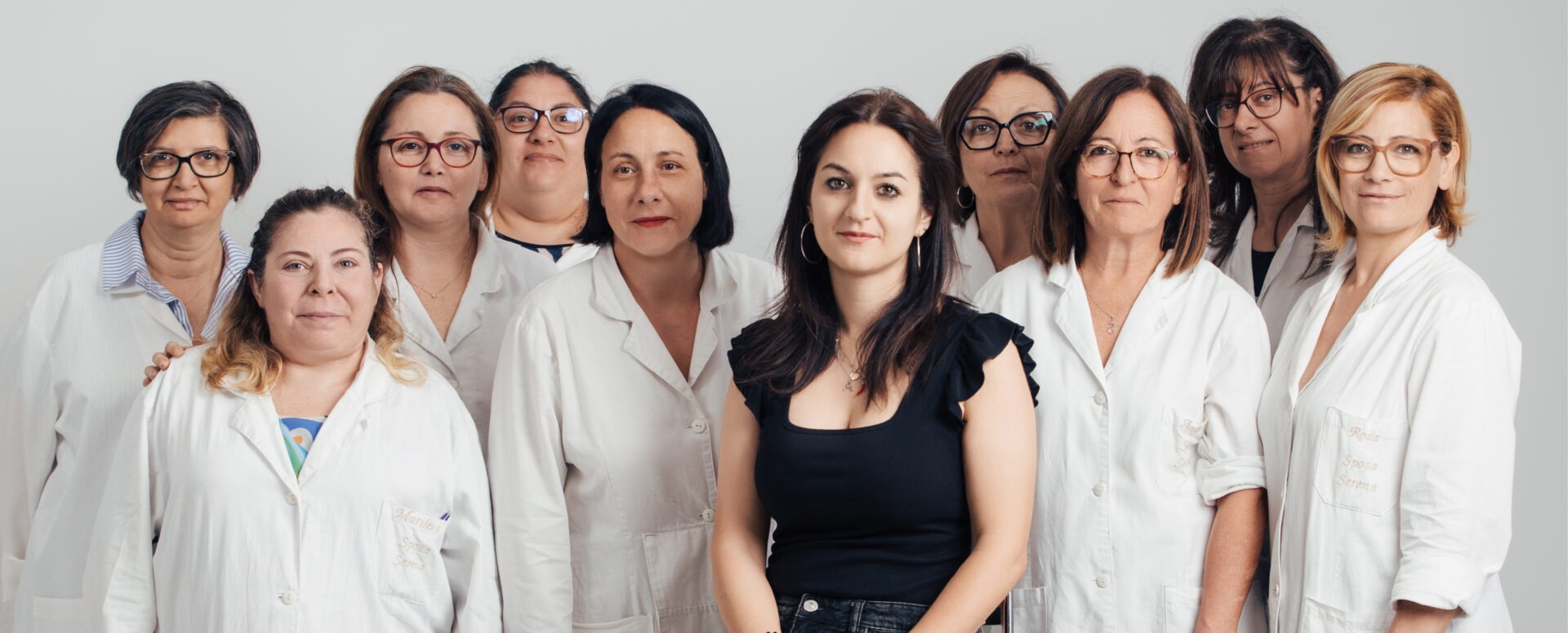 Angela Bellini cresce tra tessuti, pizzi e silenzi colmi d’arte. Figlia d’arte e anima del brand, guida un team tutto al femminile con passione e visione.